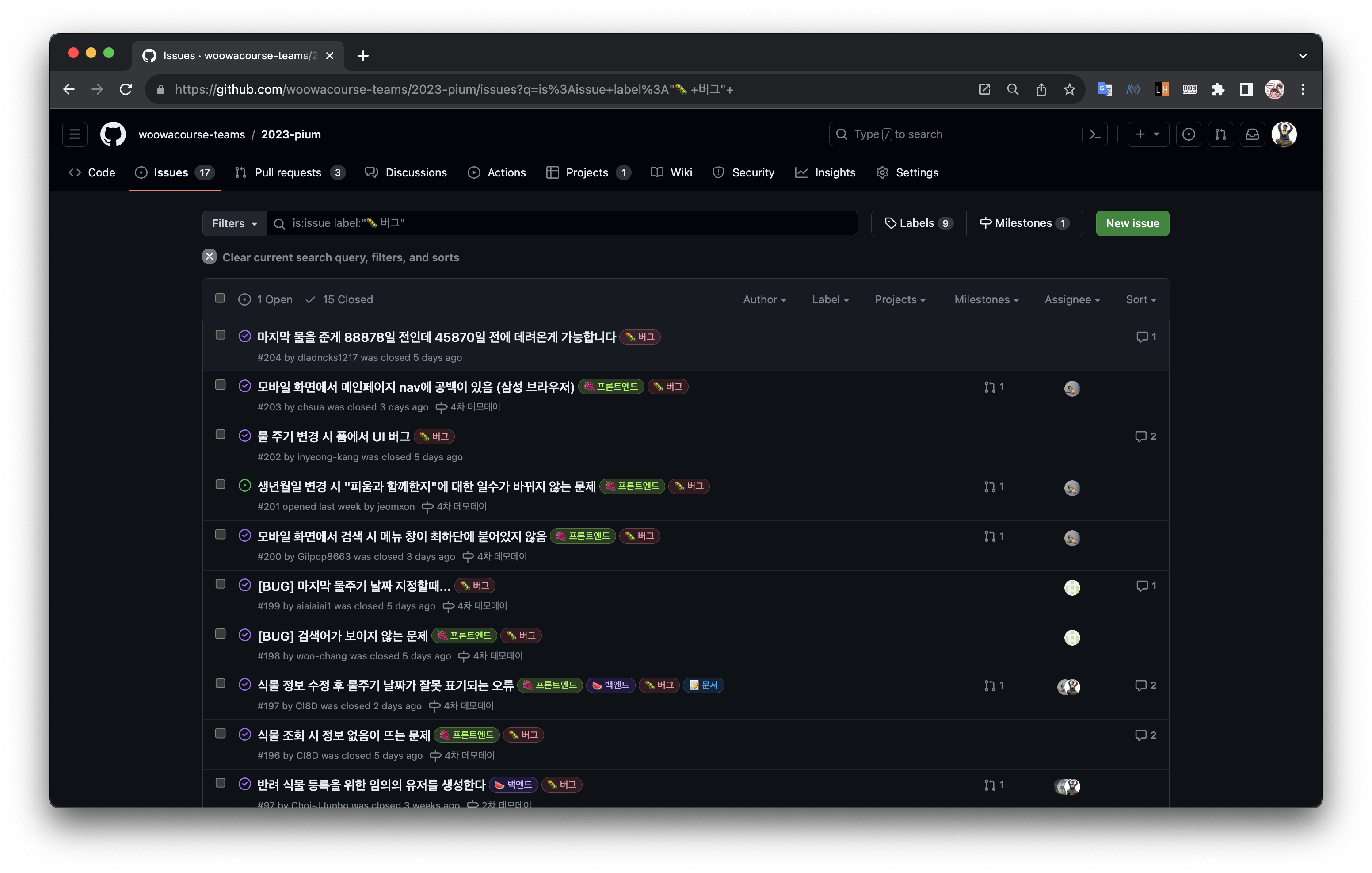 월요일에 버그리포팅 활동을 진행했습니다. 코끼리끼리 팀과 Votogether팀에서 저희 피움 서비스를 이용하면서 발생하는 문제점에 대한 버그리포팅을 작성해주셨어요 😮