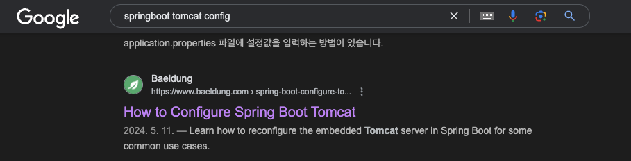 그래도 Tomcat을 내장으로 띄워서 사용하는 SpringBoot인데 가만 생각해보면 SpringBoot가 Tomcat의 기본 설정값을 바꿔놨을 수도 있다는 생각이 든다.