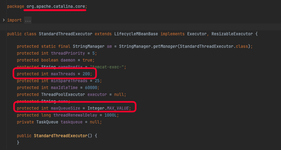 실제 설정값들을 보니 Tomcat에서 만든 소켓 내부에 들어가는 요청 대기열 크기의 기본 값이 8192만큼의 크기를 가지고, 이 값이 다 찼을 때 acceptCount가 차기 시작하는데 이 값의 크기는 기본 값이 100이다.
