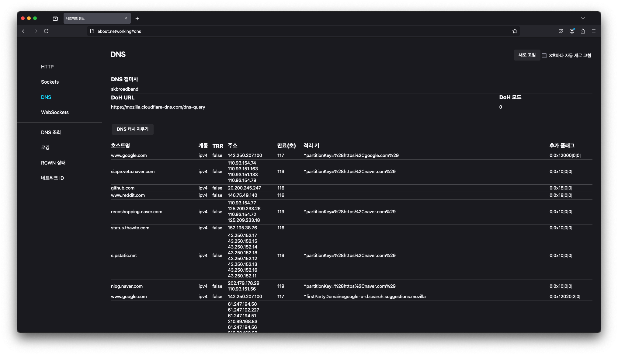 about:networking#dns 로 접속하면 확인할 수 있다.