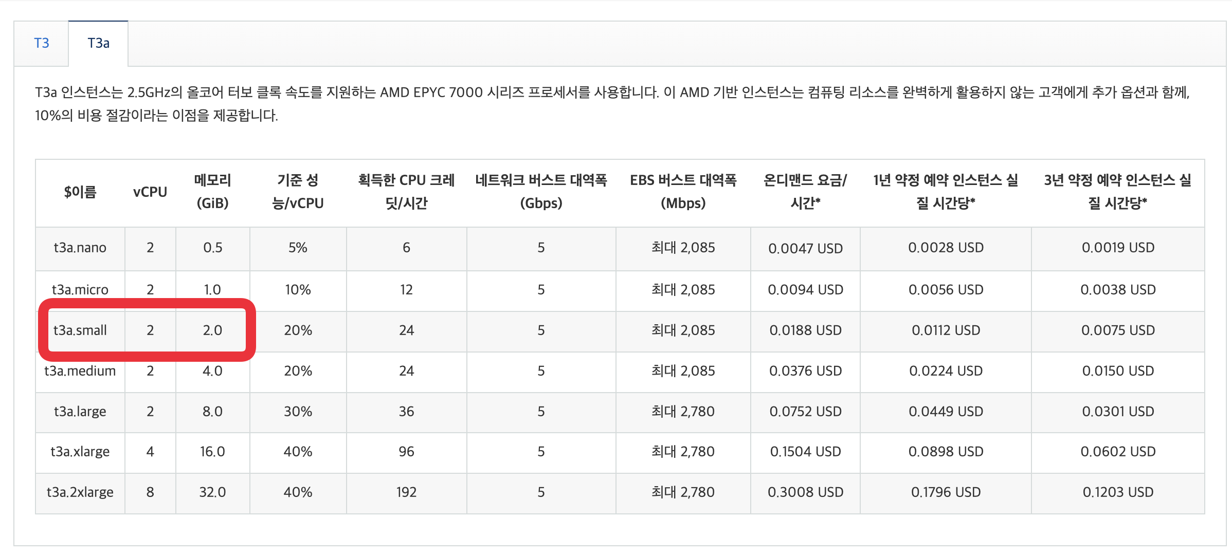 서버의 자원은 CPU 2코어, 메모리 2GB다.