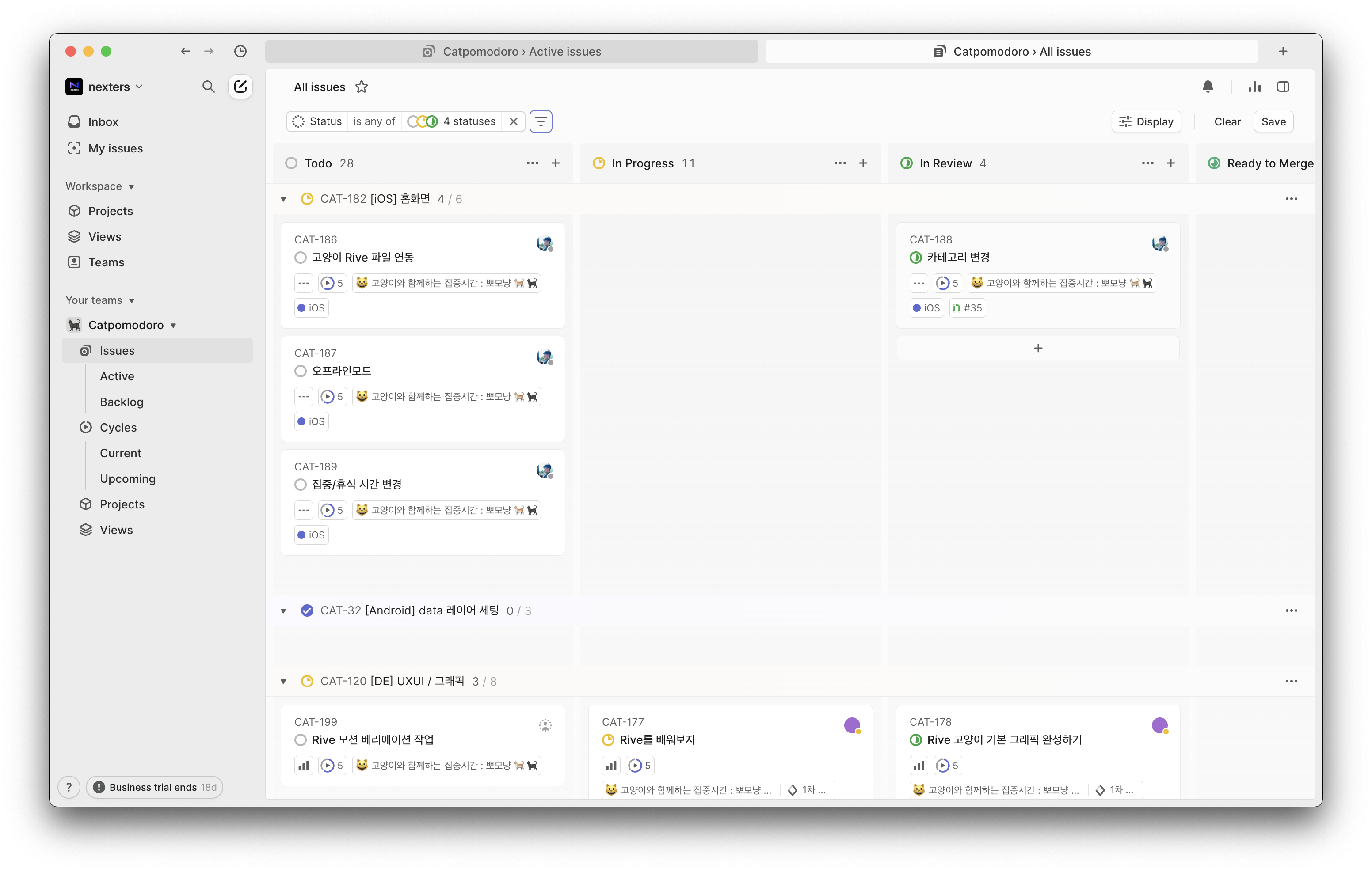 다른 팀에서 사용한다는 Linear라는 툴을 사용하기로 했다. Jira와 유사한 형태로 사용이 가능한데 속도가 빠르고 다른 툴에 대한 이식성도 좋아서 꽤나 만족스러운 툴이라고 생각한다.
