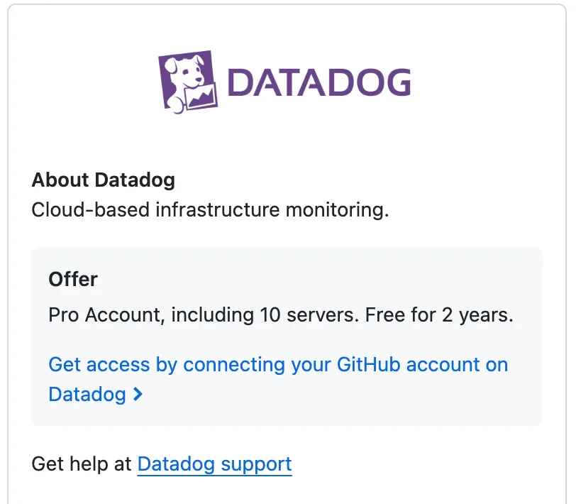 무려 GitHub Student Developer Pack의 혜택으로 Datadog을 2년간 무료로 이용해볼수 있다는 사실!!