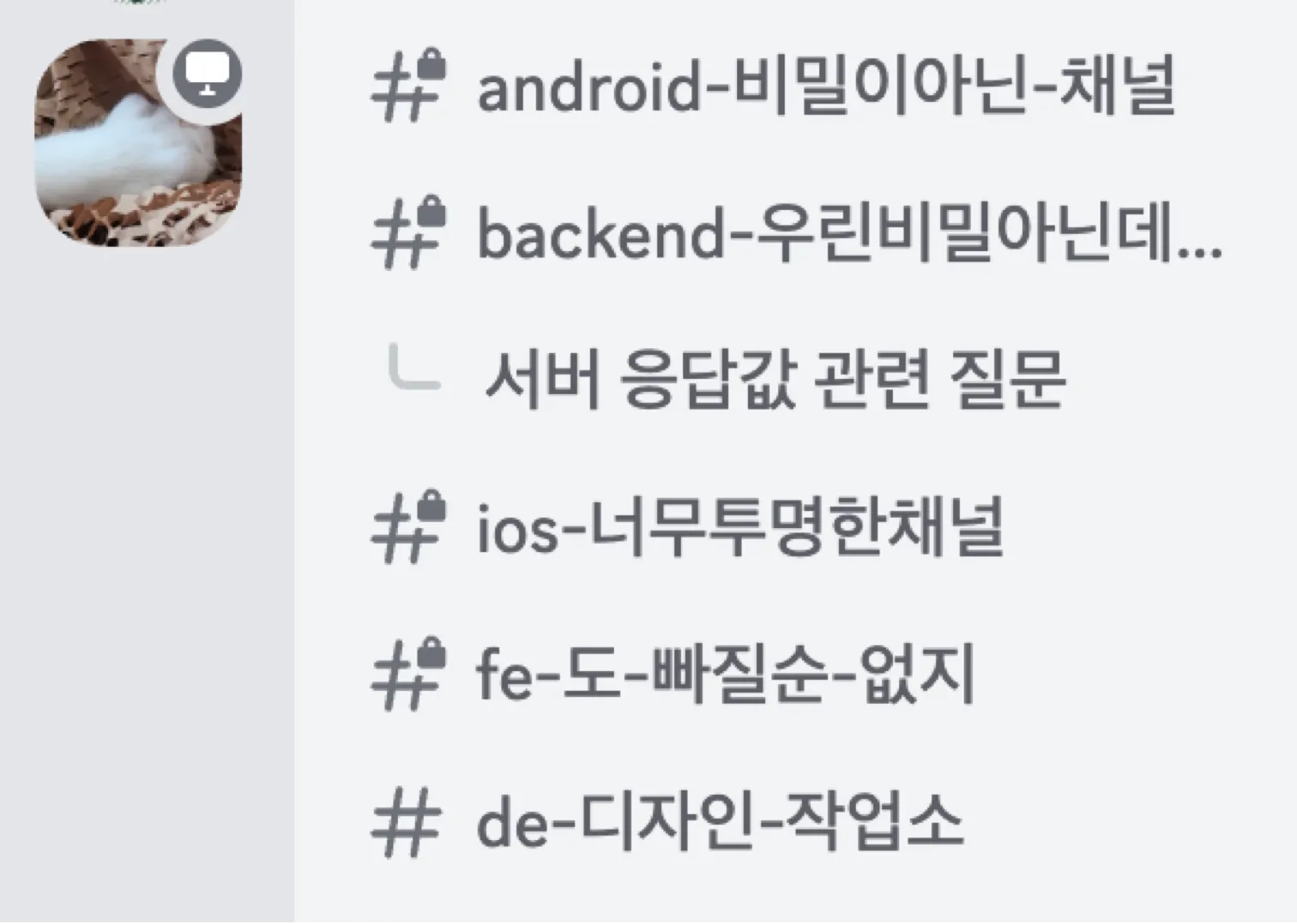 하령이가 디스코드 채널도 만들어줬다! 각 직군별로 특색있는 채널명이 특징 😎⭐