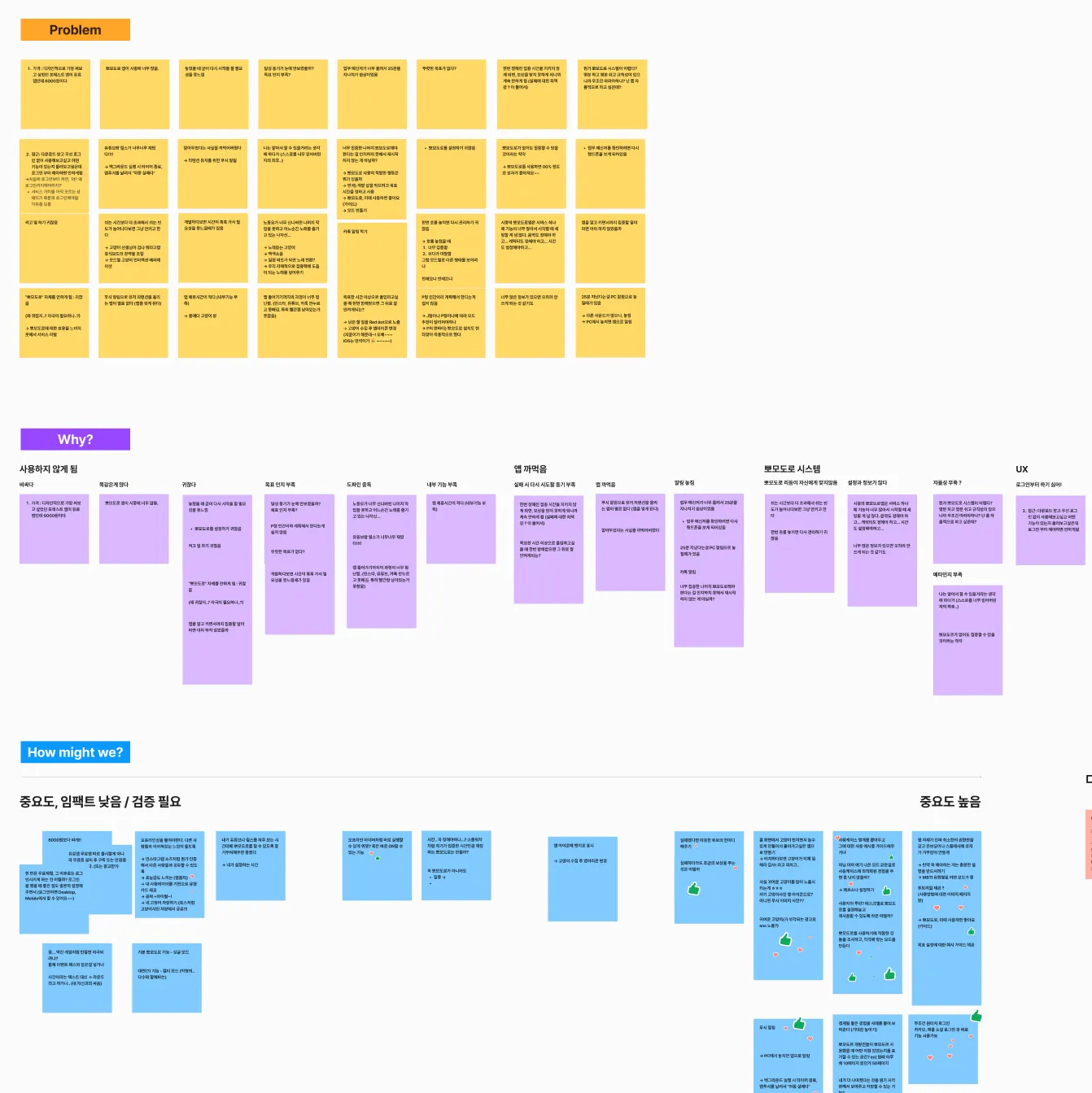 그 다음에는 뽀모도로 서비스가 왜 필요할까? 라는 문제의 본질을 파악하기 위해 Problem, Why, How might We를 이야기하는 시간을 가졌다.