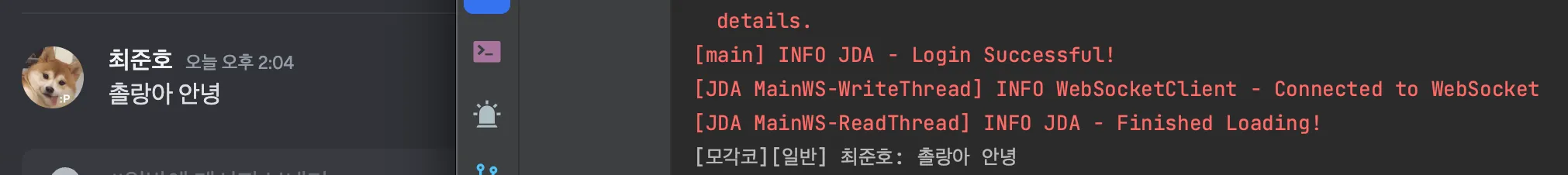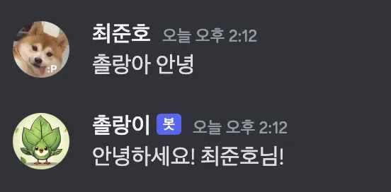 설정 후 봇을 다시 실행하니 잘 동작하는것을 확인할 수 있다.