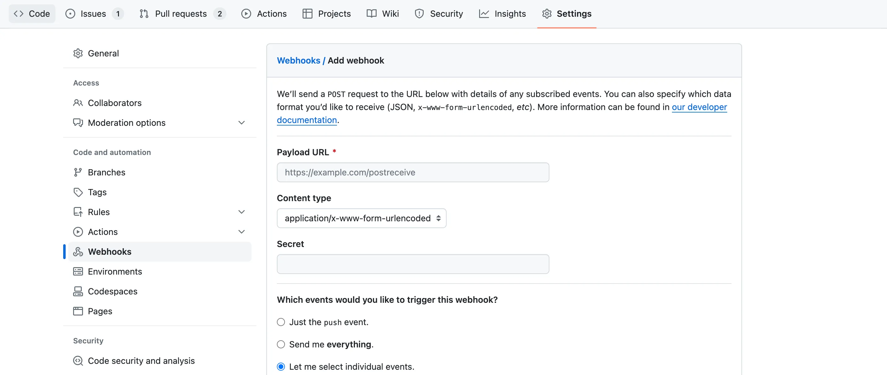 Github에서는 Webhook을 이용하여 PR, Issue 등 다양한 이벤트에 대한 내용을 제공한다.