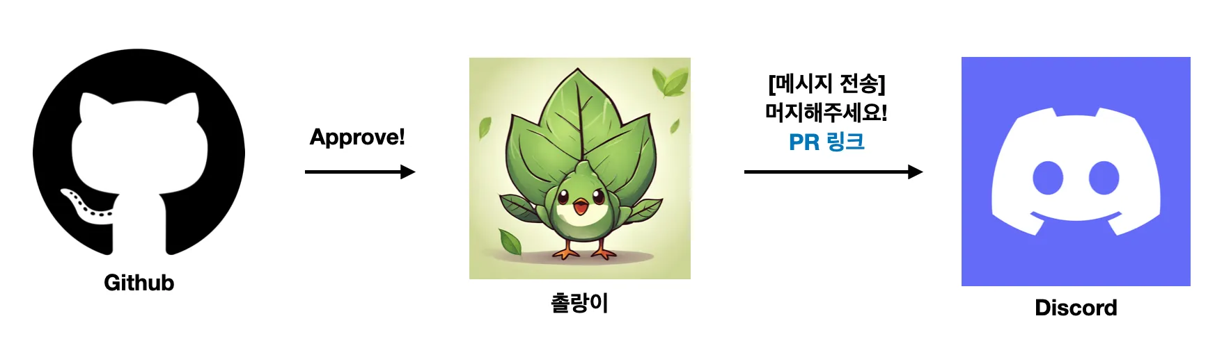 두번 꼬아서 생각해봤을 때 discord 상에서 Github Bot이 출력하는 메시지 형태를 촐랑이가 읽고 분석해서 적절한 행동을 취하게 만들 수도 있을 것 같다.