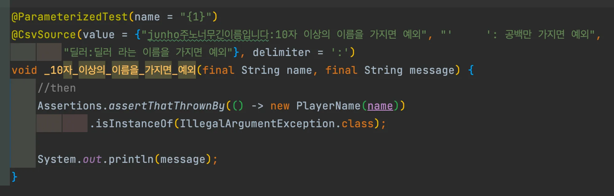 ParameterizedTest를 수행할 때 공백만 들어있는 값을 테스트하고 싶었다.