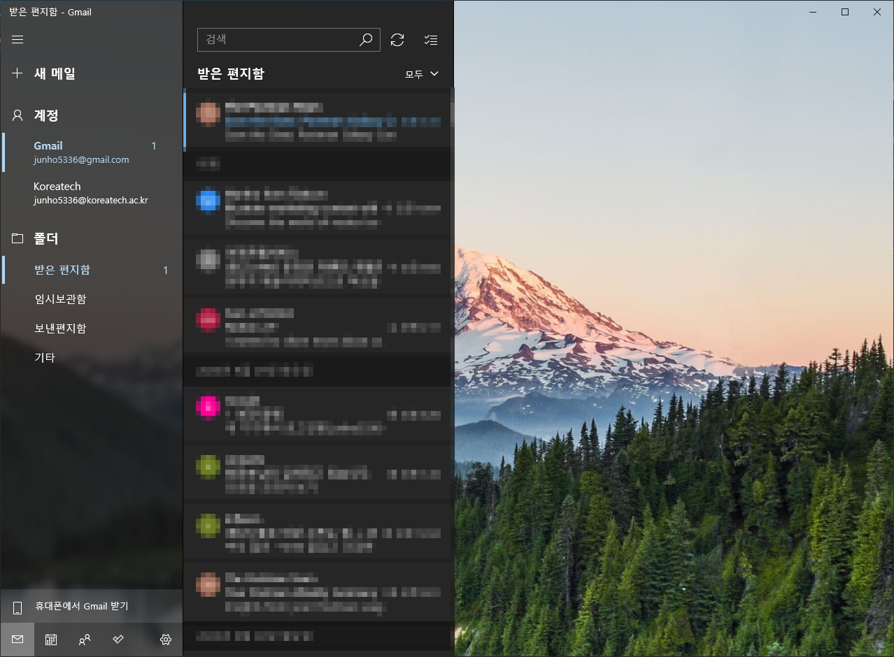 윈도우에서 제공하는 메일 프로그램에 학교 메일을 등록해서 사용중이였다.