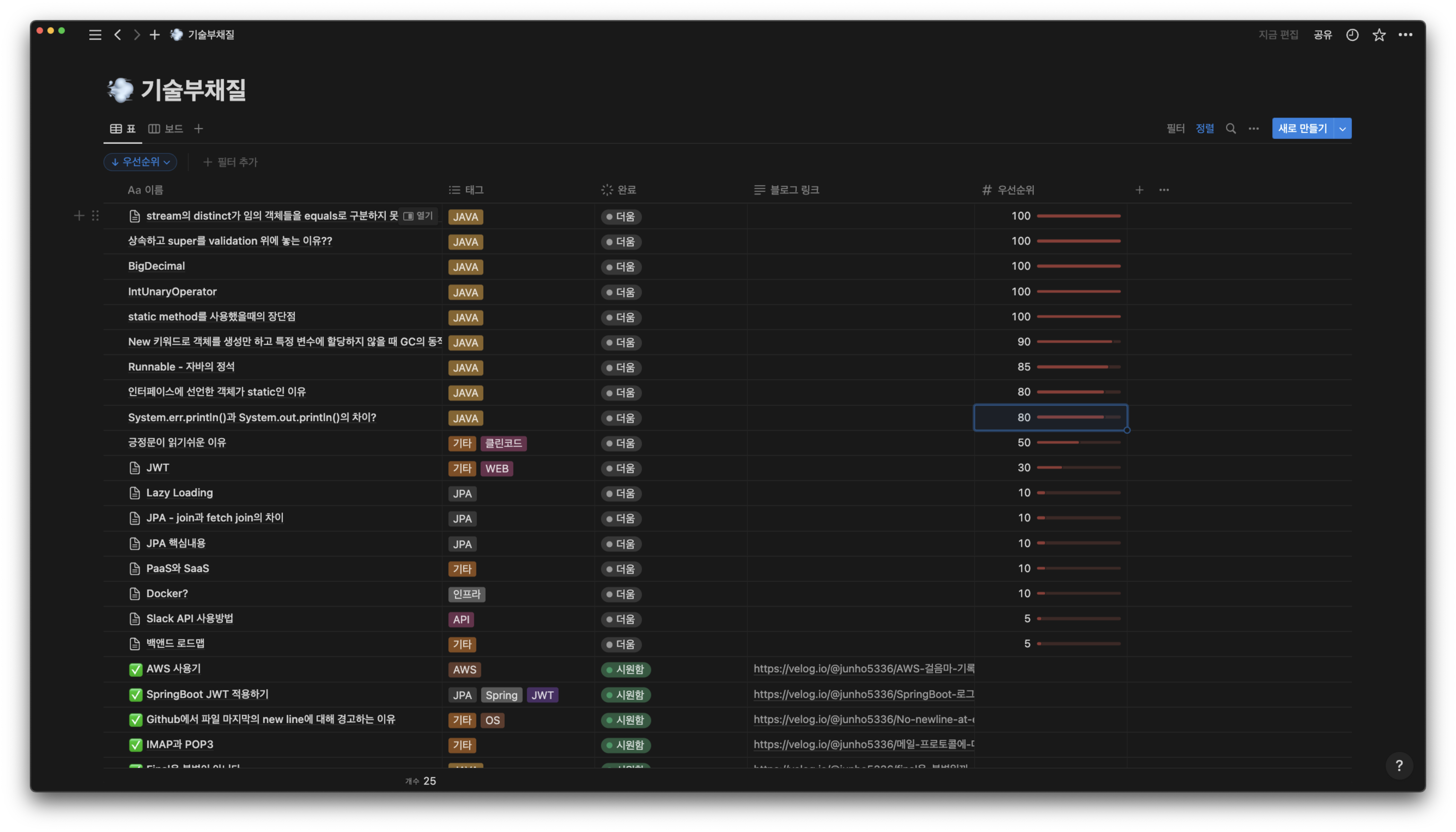 아이폰 기본 메모 앱에서 끄적이던 기술부채를 조금 더 예쁘게 정리하고 싶어서 노션을 사용하기로 했습니다.