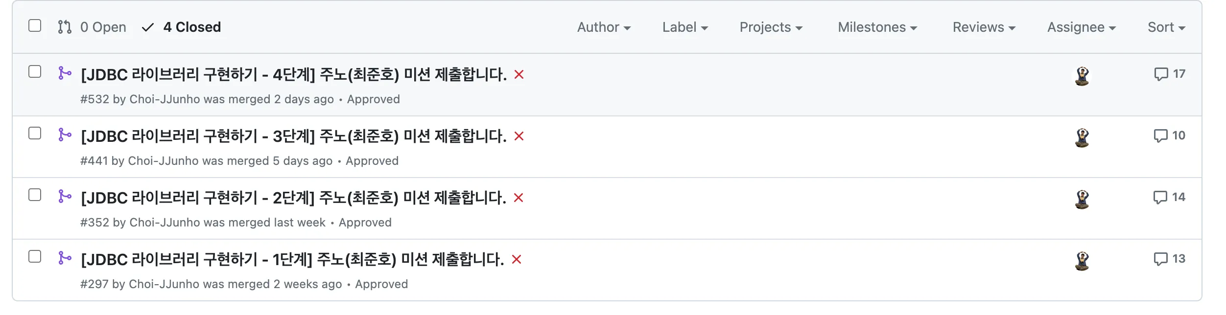 리뷰어, 리뷰이 모두에게 많은 배움을 얻을 수 있는 미션이였습니다~!