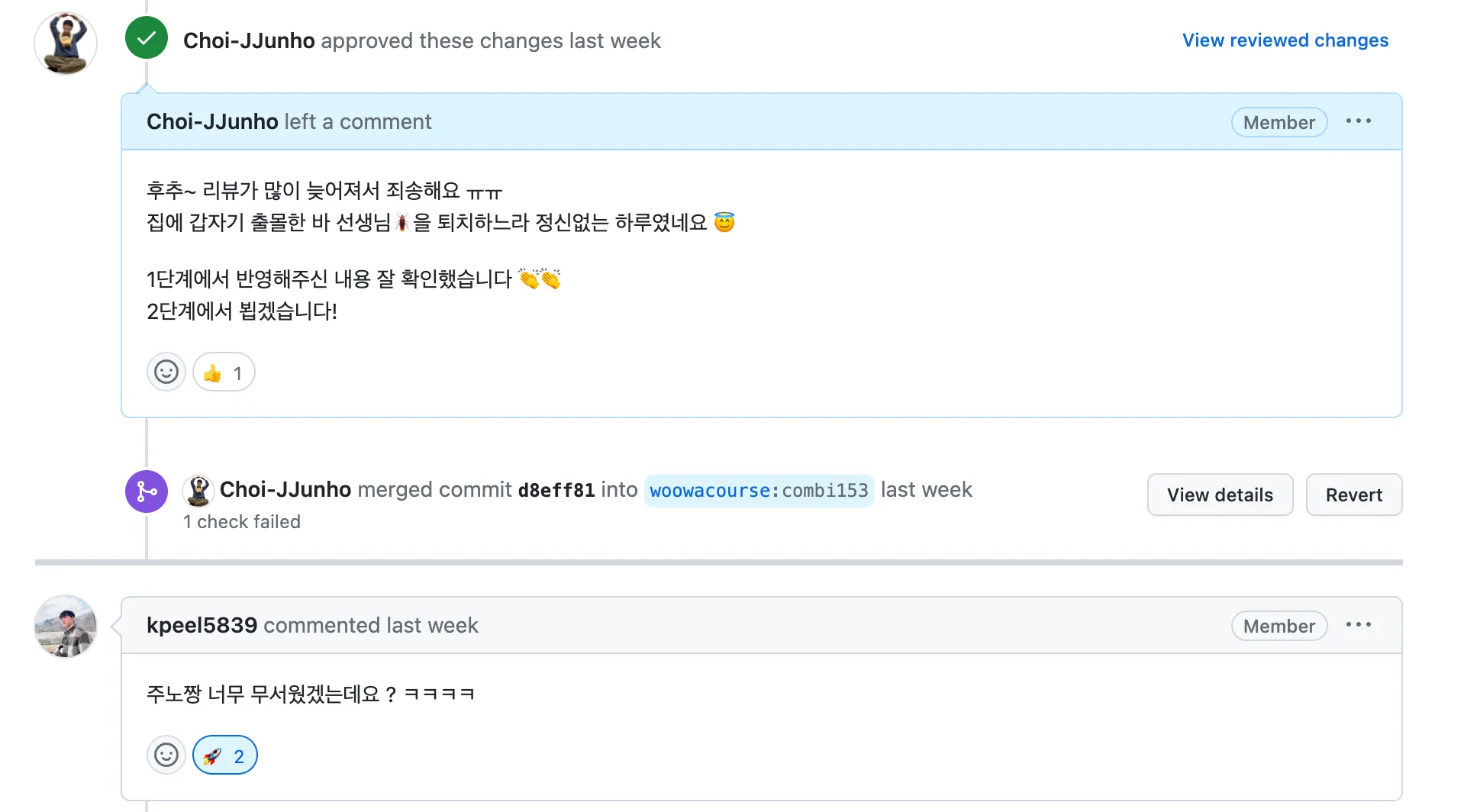 슬슬 수료가 다가오는 시점에서 즐거운 우테코생활을 잘 마무리할 수 있도록 열심히 살아야겠네요 🚀