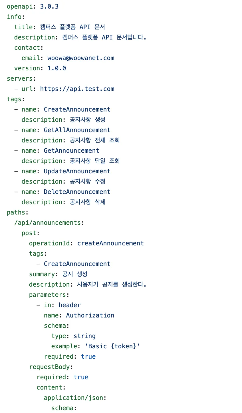 중간에 공지&출결팀의 요구사항을 문서화하기 위해 블랙캣과 페어로 OpenAPI Spec 문서화 작업을 진행했습니다 👍
