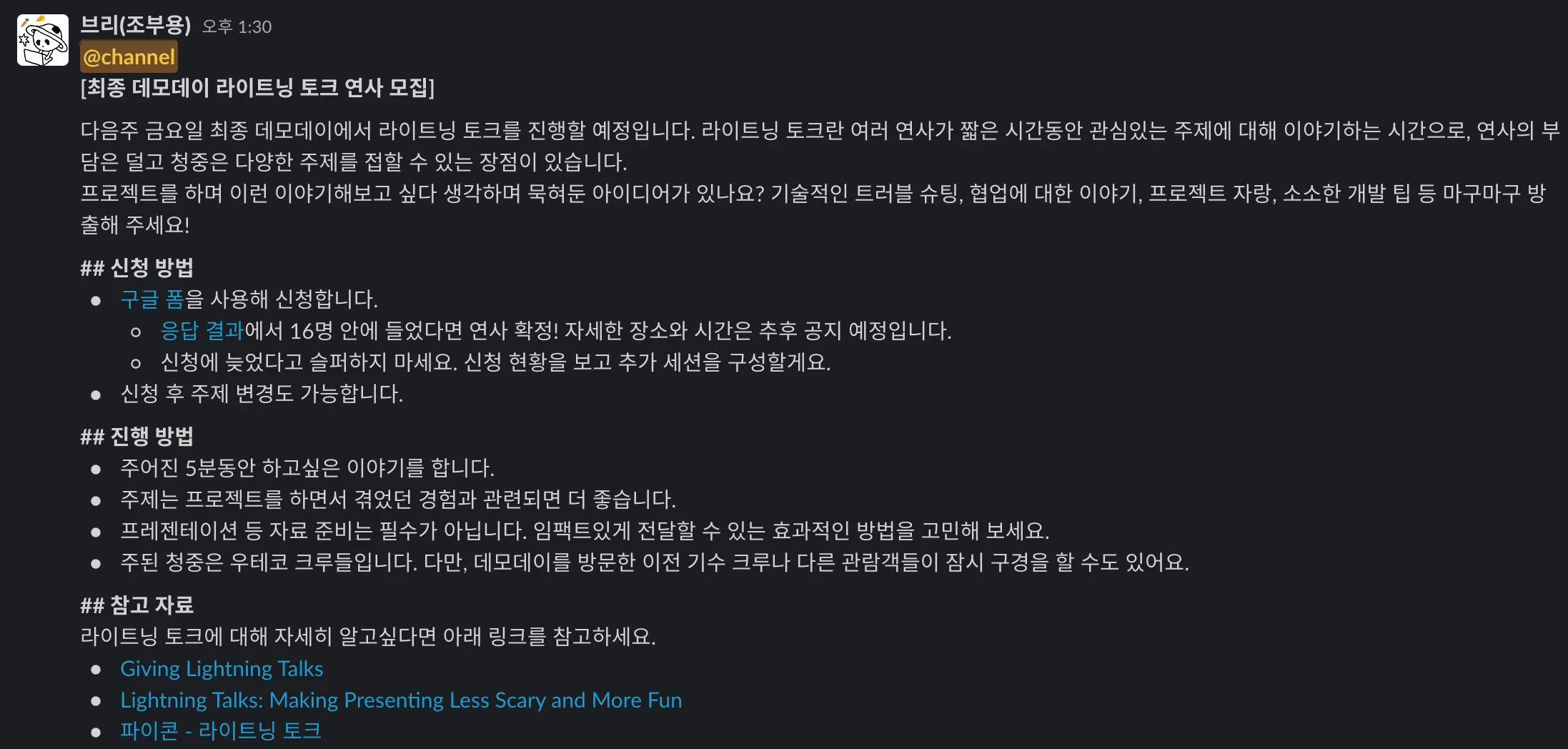 예전에 라이트닝 토크 연사 모집하길래 1등으로 바로 신청해버렸습니다~!
