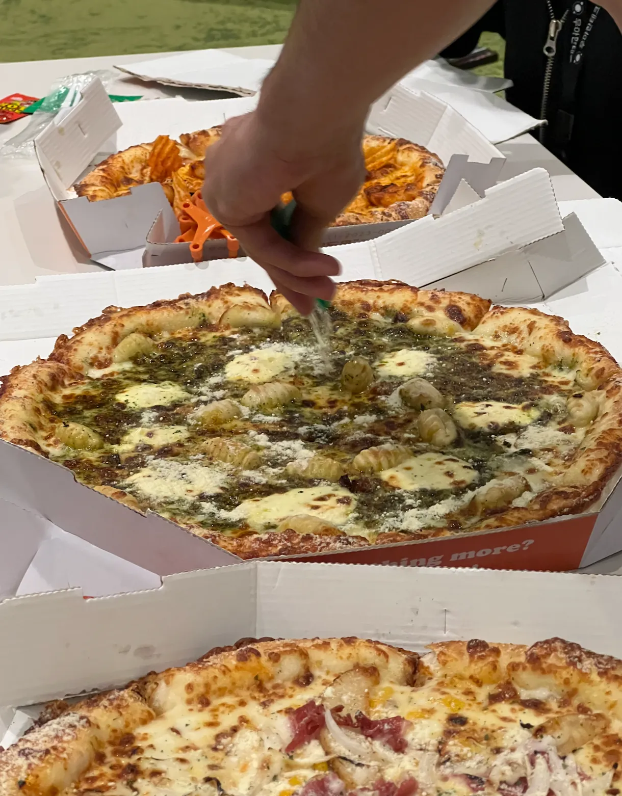 문제를 해결하면서 팀원들 다같이 저녁에 먹은 피자~ 맛있었습니다 🤤