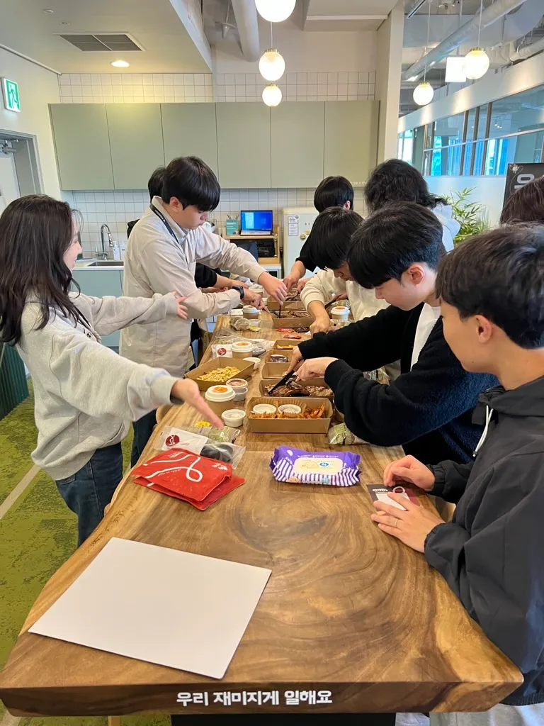 열심히 고기를 썰고있는 캠퍼스 플랫폼 팀의 모습입니다 🥩