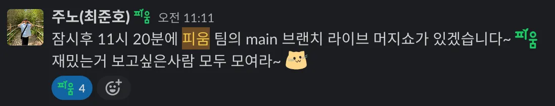 main 브랜치 라이브 머지쇼도 진행했습니다 ㅋㅋㅋㅋㅋㅋ 😆