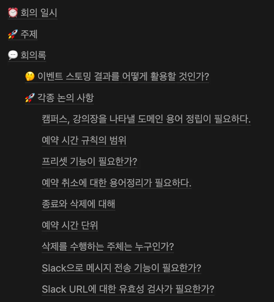 금요일에는 이벤트 스토밍에서 도출된 핫스팟(협의 혹은 논쟁 지점)에 대해 정리하는 시간을 가졌습니다.