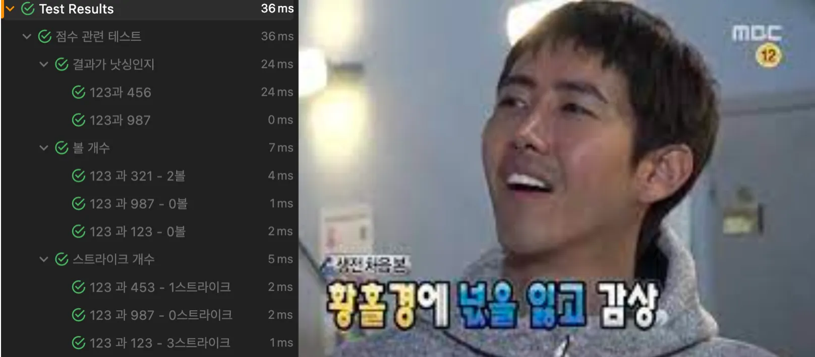 일단은 테스트를 하는 방법을 알았으니 기분좋게 통과표시 한번 띄워주고~