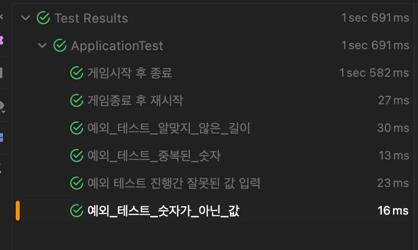 ApplicationTest의 모든 테스트가 성공해야 한다. 테스트가 실패할 경우 0점 처리한다. - 프로그래밍 요구 사항에서 달리 명시하지 않는 한 파일, 패키지 이름을 수정하거나 이동하지 않는다.