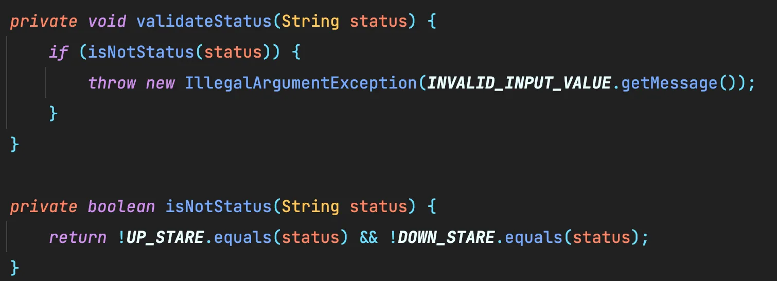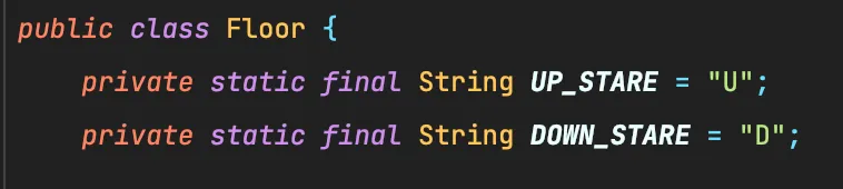 가령 이렇게 생긴놈을 이렇게 바꿀 수 있겠다. 간혹 이렇게 특정 클래스에서만 사용하는 상수들은 재사용성 혹은 연관성이 없다고 느껴져 굳이 enum으로 분리하지 않았다.