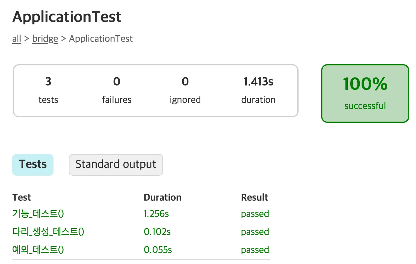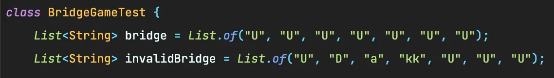 딱 이상황이다. 위 상황에 맞춰 BridgeMaker를 한단계 위에서 사용하게 하고 Bridge의 인자는 List<String>를 받게끔 구성하니 테스트하기가 한결 편해졌다.