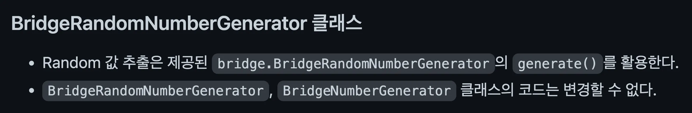 BridgeRandomNumberGenerator 클래스의 패키지를 옮겨서 발생한 문제였다..😅 아니 클래스 코드를 변경하지 않는다는것이 패키지까지 해당될줄은… 미처 생각 안했던것같다.