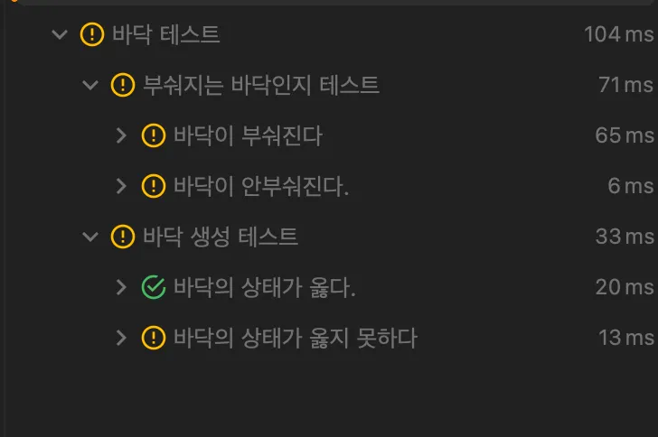 게다가 몇몇 구조를 수정해도 미리 작성해둔 테스트코드가 리팩토링한 코드에 문제가 없다는 것을 증명해주고있어 마음도 편안했다.
