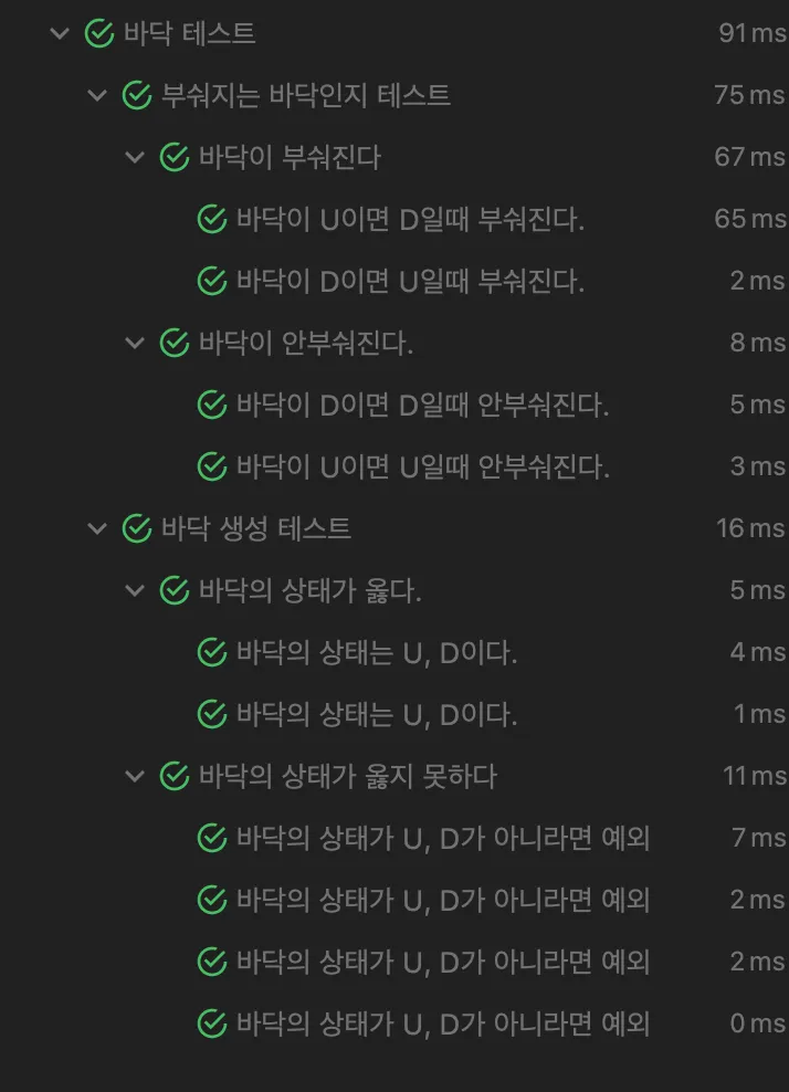 예를들어 바닥은 U 혹은 D 라는 상태만 가져야한다는 것을 가지고 테스트를 만들면 이렇다.