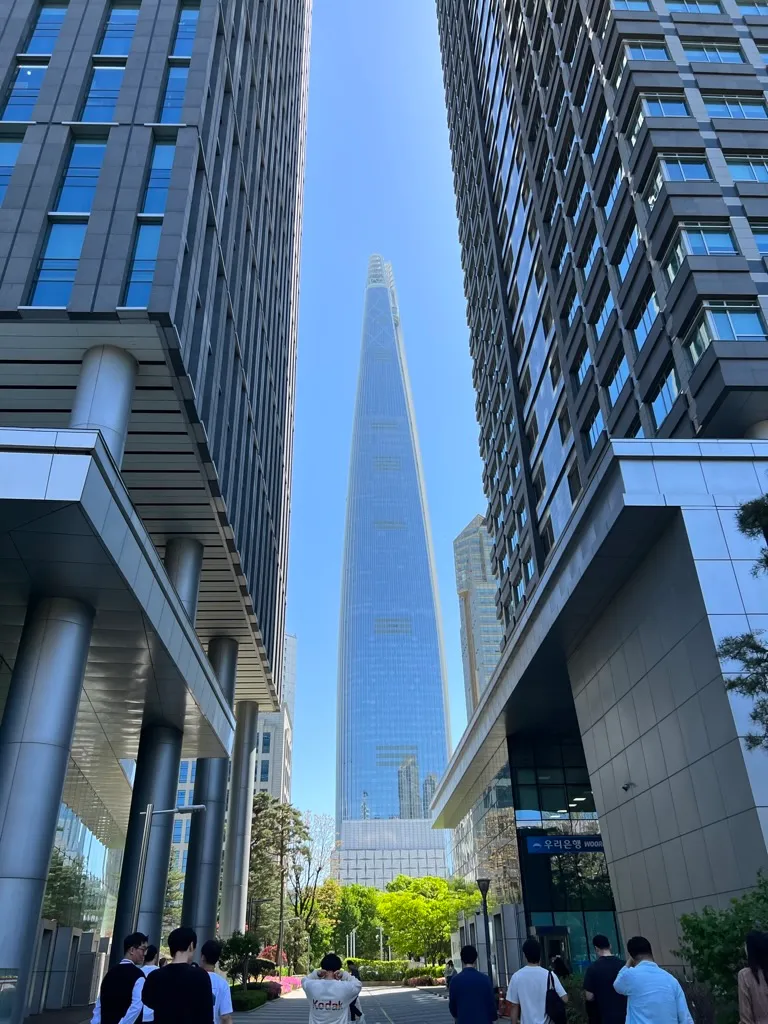오는길에 빌딩 사이에 보이는 잠실타워가 멋있어서 사진 한장 📸