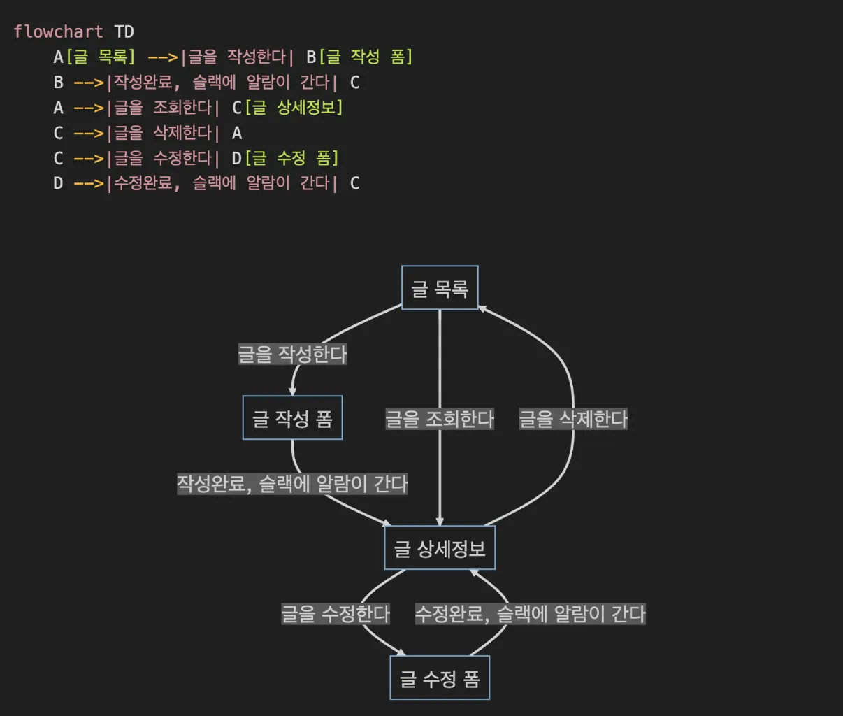 공지사항 게시판을 작성하면, 슬랙에 알림이 가는 기능을 기획했습니다!
