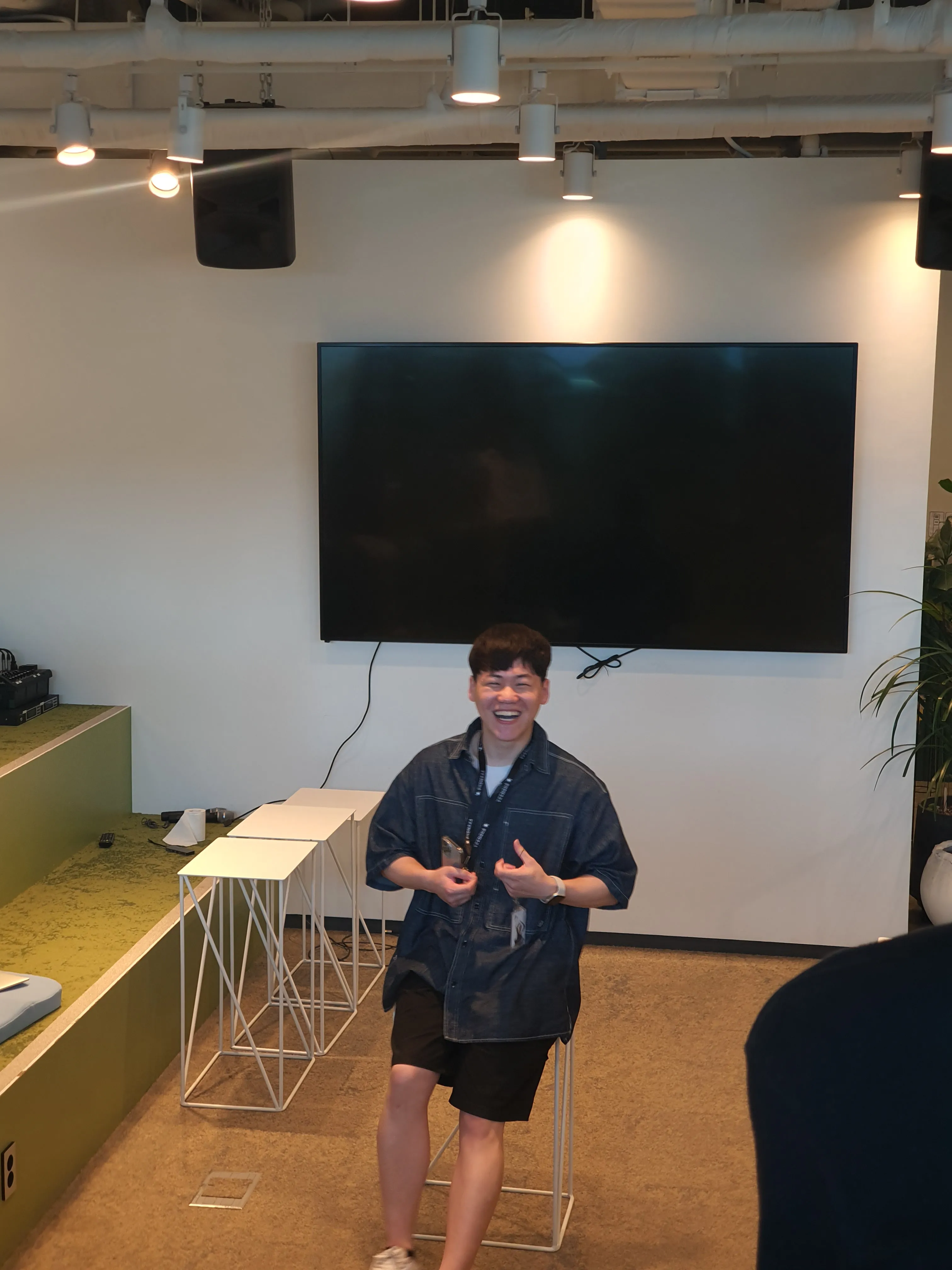 사진을 찍고 나서 트랙룸에 옹기종기 모여서 이야기를 나눴습니다. 첫 협업미션을 하면서 어려운점이나 좋았던 점을 이야기하는 시간을 가졌는데 누가 갑자기 가운데 앉아서 이야기해달라고 하는 바람에 갑자기 레벨인터뷰 느낌이 되어버렸네요 😂