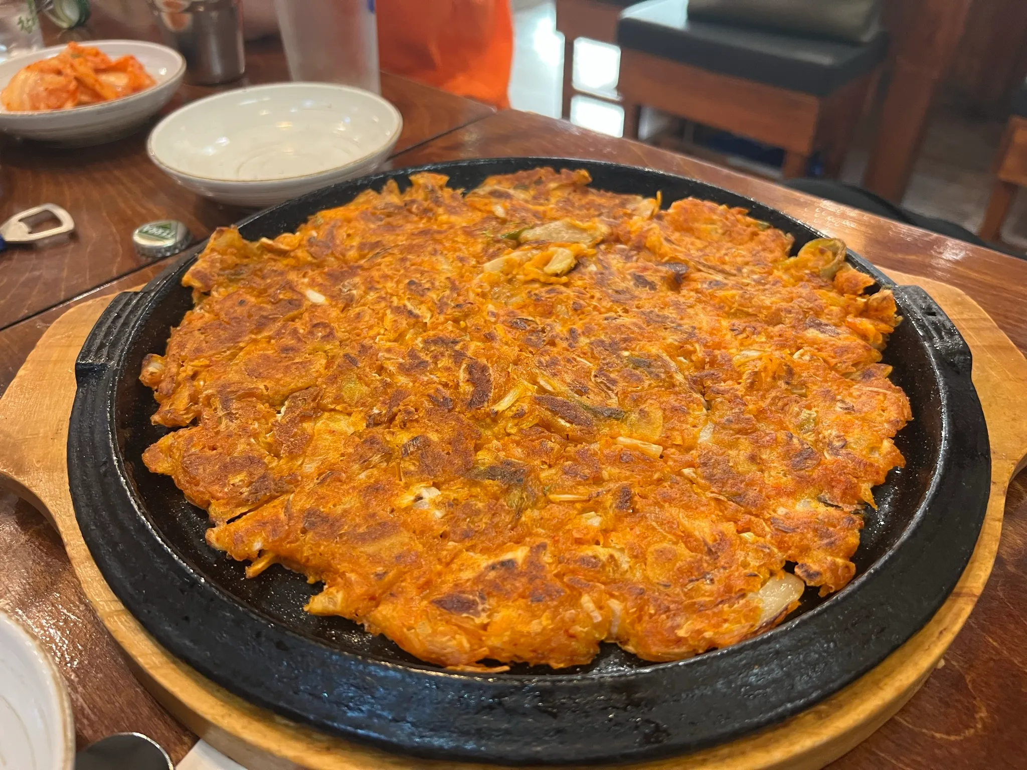 저녁에 갑자기 비가와서 파전에 막걸리가 생각나는 바람에 망고, 토리, 주드, 박스터랑 새벽집에 가서 김치전을 먹었습니다.