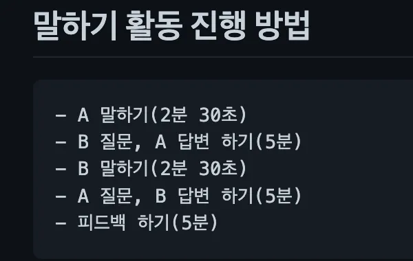 아무튼 학습로그 말하기 활동이 다 끝나고 보니 1시간 넘게 지나버렸네요 ㅋㅋㅋㅋ
