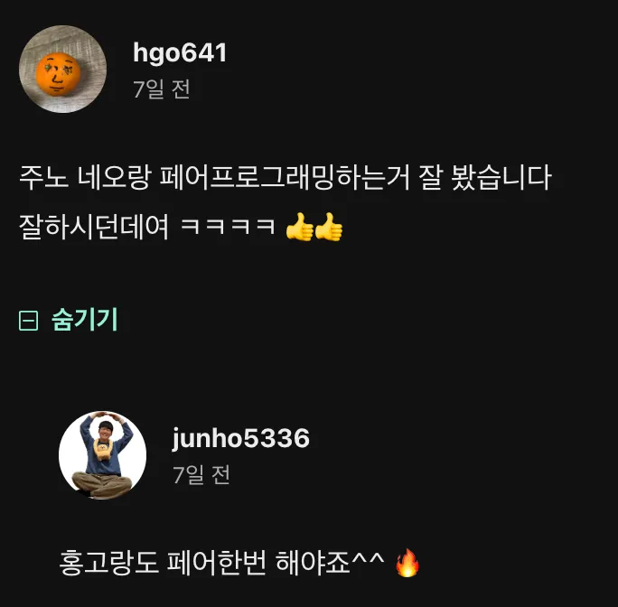 페어 끝나니까 이번주에는 그만보자고 하는 홍고..🍊