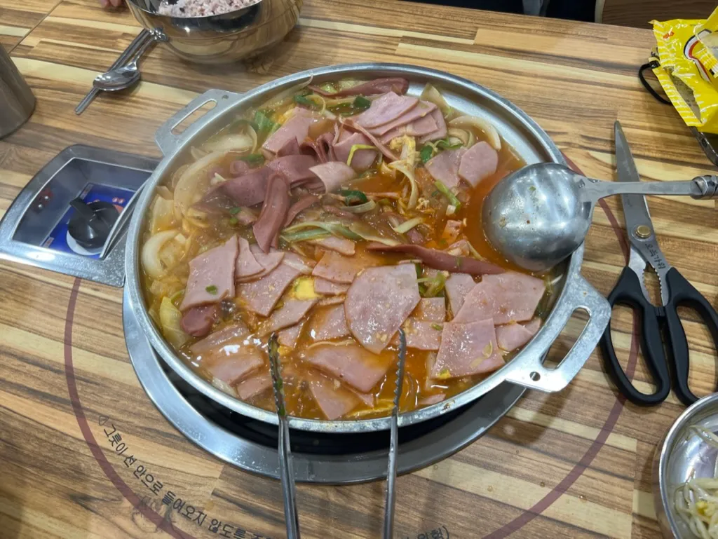토미, 그레이, 로이스, 말랑과 함께 점심으로 부대찌개를 먹었습니다!