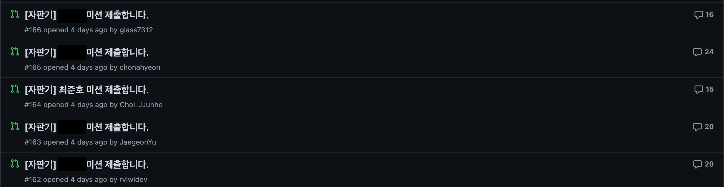 이후에는 서로가 올린 PR에 돌아가면서 리뷰를 남기고 각자 자신의 코드를 리팩토링하는 시간을 가졌다.