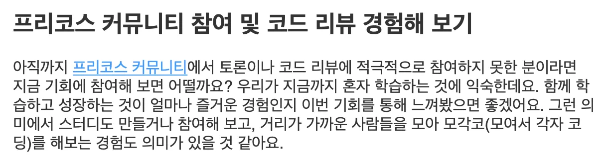 우아한 테크코스 마지막 코수타 시간이 끝나니 정말 프리코스가 끝났다는 실감이 났다. 뭔가 코수타가 끝나고 5주차 과제가 나와서 싱글벙글 하고있어야할거같은데 그렇지 못해서 아쉬운점도 있었다.