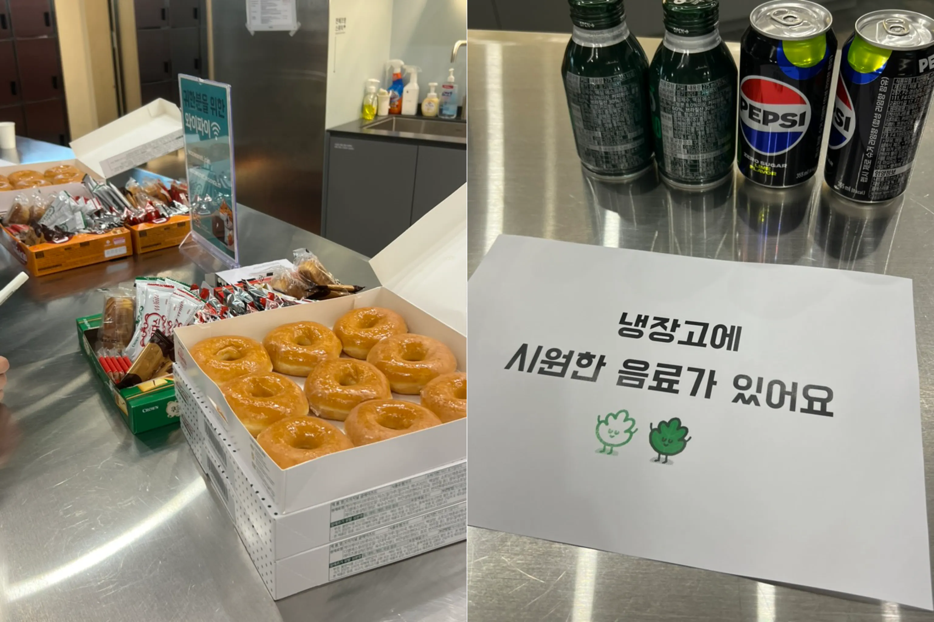 들어오면서 새로생긴 마스코트인 초록이 스티커를 나눠주셨다.