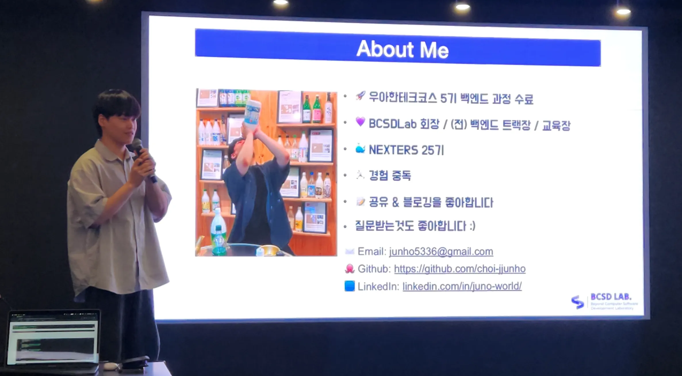 나는 BCSDLab은 어떤 동아리이고 어떤 방식으로 초록스터디를 운영했는지와 같은 경험에 대한 공유를 위주로 발표를 진행했다.