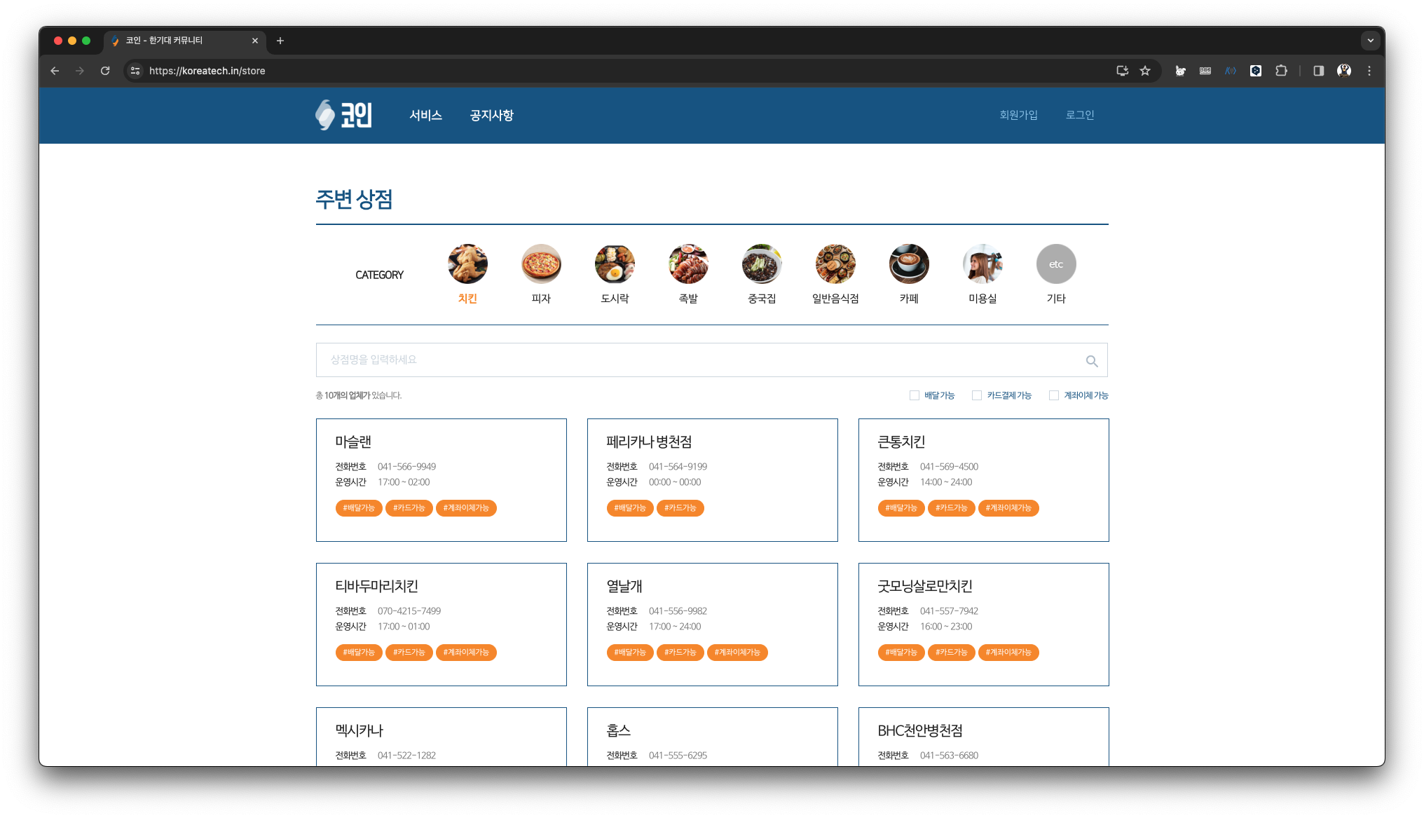KOIN에는 상점 정보를 보여주는 기능이 있다.