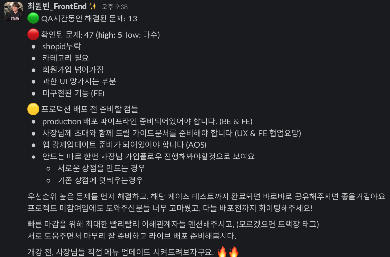 직장다니느라 고생하는데 QA 진행까지 주도해준 고마운 PL ✨