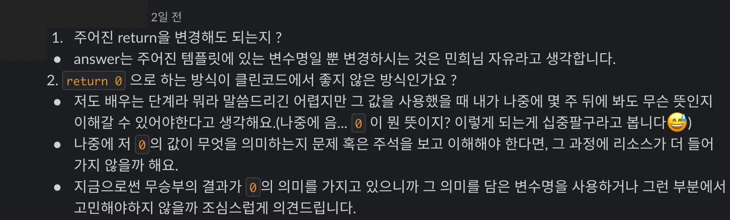 우테코에 참가하는 많은 사람들이 클린코드에 대해 고민하는 모습에 배울점이 많았다.