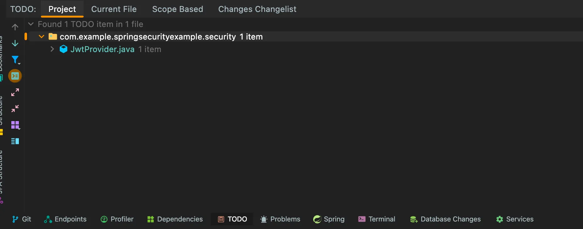 IntelliJ 에서는 다음과 같이 TODO가 붙어있는 주석들에 대해 탐색하기도한다.