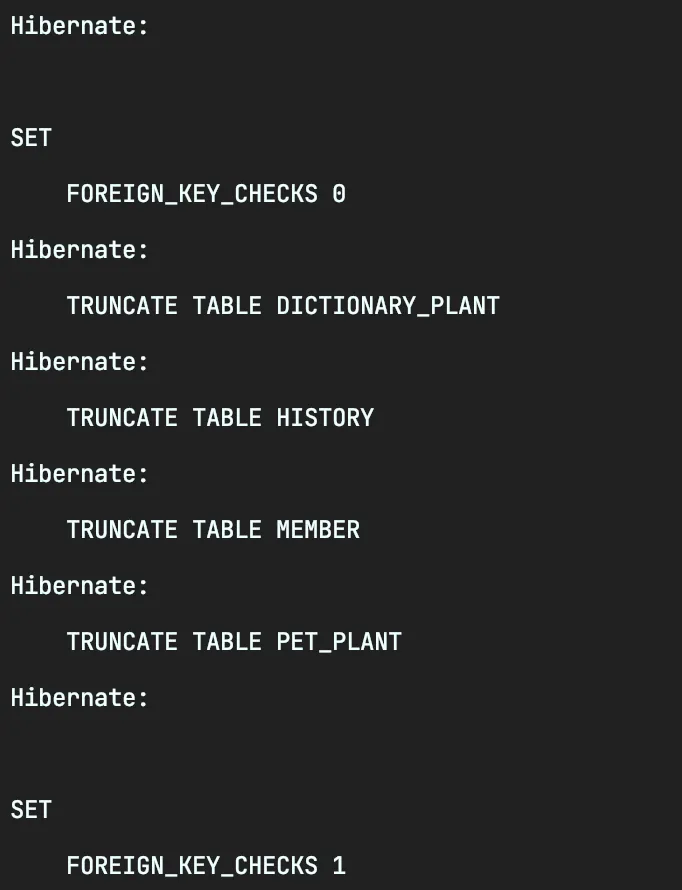 각 테스트별로 truncate 문도 잘 수행되는 것을 확인할 수 있다.