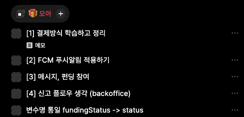 2월중으로 배포하는것을 목표로 잡고있어 꽤나 타이트하게 개발을 진행해야할 것 같다. MOA에 대한 자세한 정리는 2월달에 배포 이후에 진행하게 될 것 같다. 배포까지 달려봅시다 화이팅! 👏