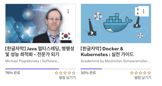 1월 초에는 하루에 1시간 이상 꾸준히 강의를 보면서 학습을 했다. 시간이 아까워서 가끔은 지하철에서도 간간히 듣기도 했다. 중간부터는 프로젝트 일정이 너무 바빠지면서 강의를 못들었는데 2월에는 연휴나 주말을 이용해서라도 꾸준히 들어야겠다. Docker 강의는 kubernetes까지 있어서 생각보다 양이 많다.. 시간 분배를 잘 해봐야할거같다.