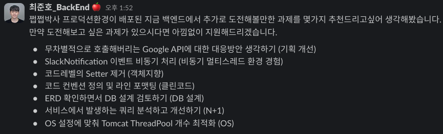 때는 2022년 상반기. 당시에는 6개월짜리 프로젝트로 기획되었던 쩝쩝박사라는 프로젝트가 있었다. 하지만 코로나로 인한 비대면 상황에 업무 프로세스를 빠르게 구축하지 못했던 상태라 프로젝트의 진척도가 많이 느려졌고, 이는 지금까지 배포를 하지 못한 프로젝트가 되었다.