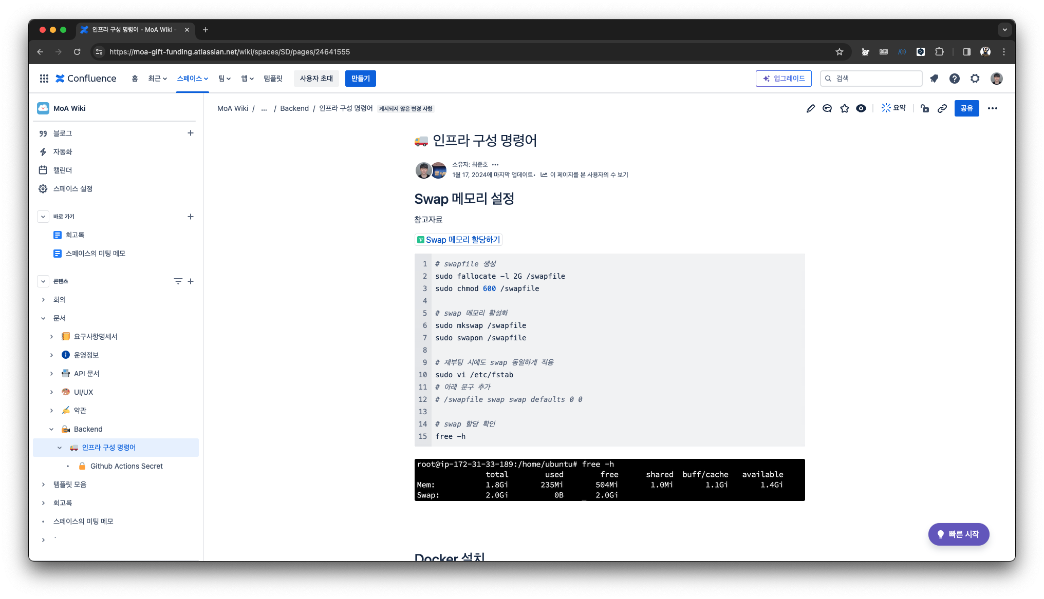 나중에 동일한 환경으로 서버를 다시 구축해야하거나 구성 당시의 로그가 필요할 수 있기 때문에 인프라 구성명령어부터 문서화를 쭉 해뒀다. 말랑도 나도 문서화를 중요하게 생각해서 서로 보완해가며 문서화를 진행하고있다. 꽤나 가치있는 문서가 탄생하고있다. 👍